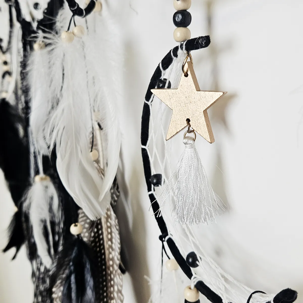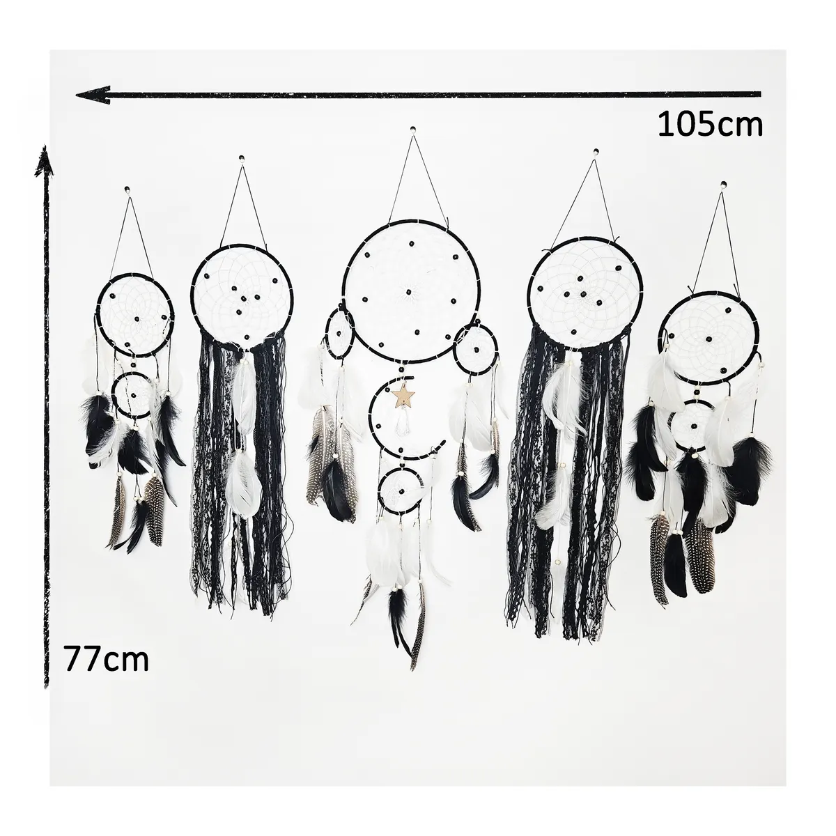 Varje drömfångare är handgjord med omsorg, vilket gör den helt unik. Därför kan mindre variationer i storlek, form och färg förekomma, en del av charmen med genuint hantverk. Ingen drömfångare är exakt den andra lik, vilket gör din alldeles speciell.