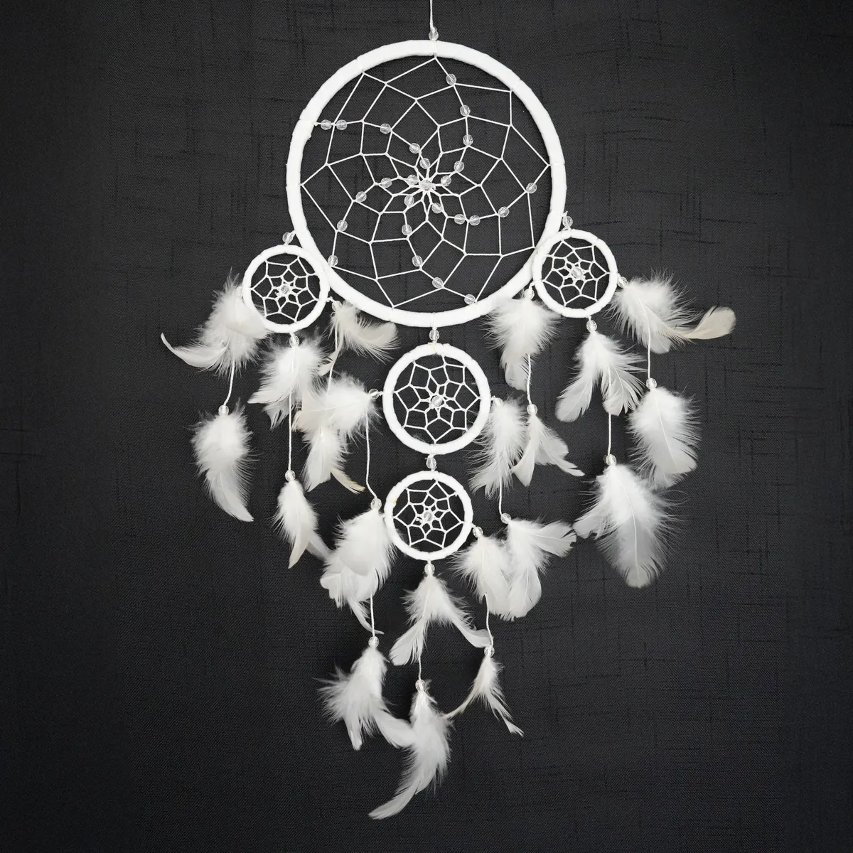 Varje drömfångare är handgjord med omsorg, vilket gör den helt unik.Därför kan mindre variationer i storlek, form och färg förekomma – en del av charmen med genuint hantverk. Ingen drömfångare är exakt den andra lik, vilket gör din alldeles speciell.