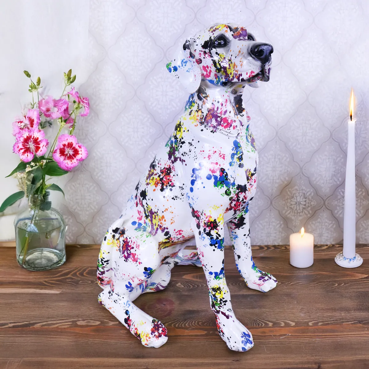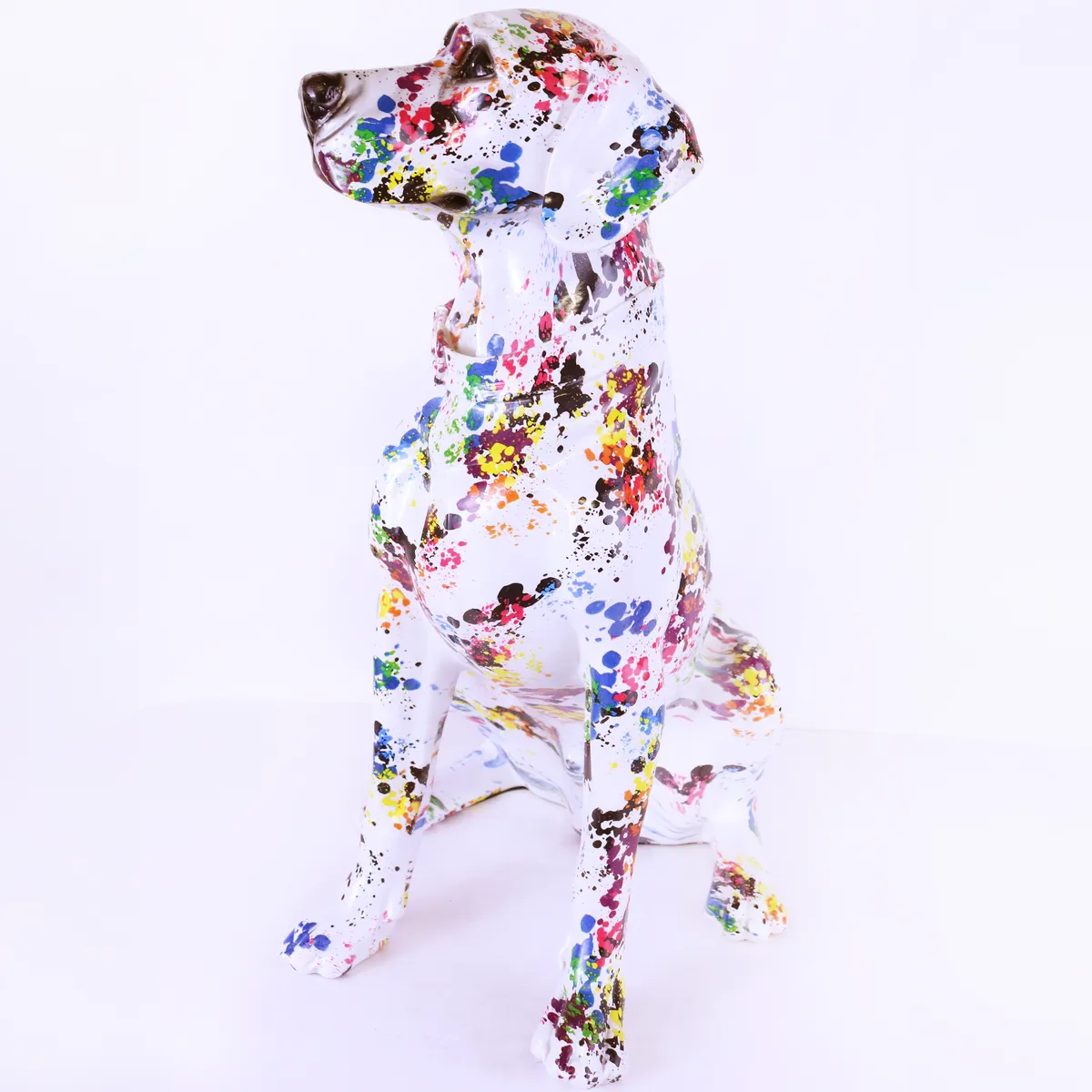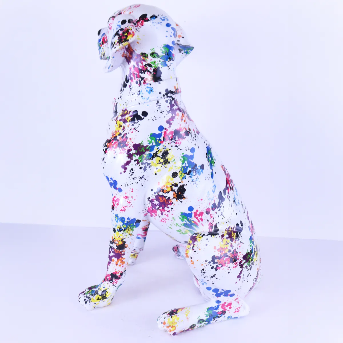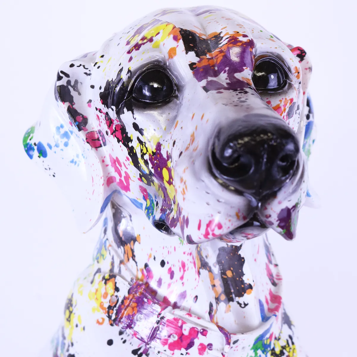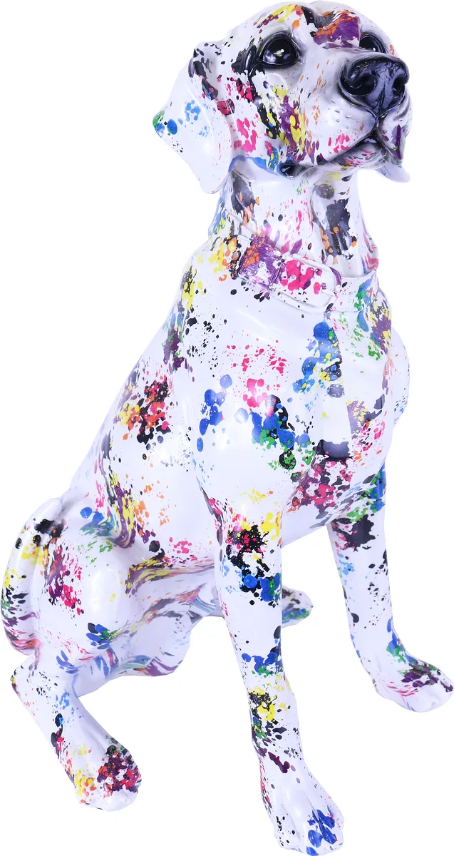 Snygg graffiti målad hund. Alla är har ett helt unikt mönster, ingen är den andra lik. Så denna bild motsvarar inte just den du beställer. Perfekt till den som gillar design av klass och annorlunda inredning, unika prydnader, fina prydnadssaker, cool inredning. Denna ståtliga figur i hemmet kommer dra blickarna åt sig.