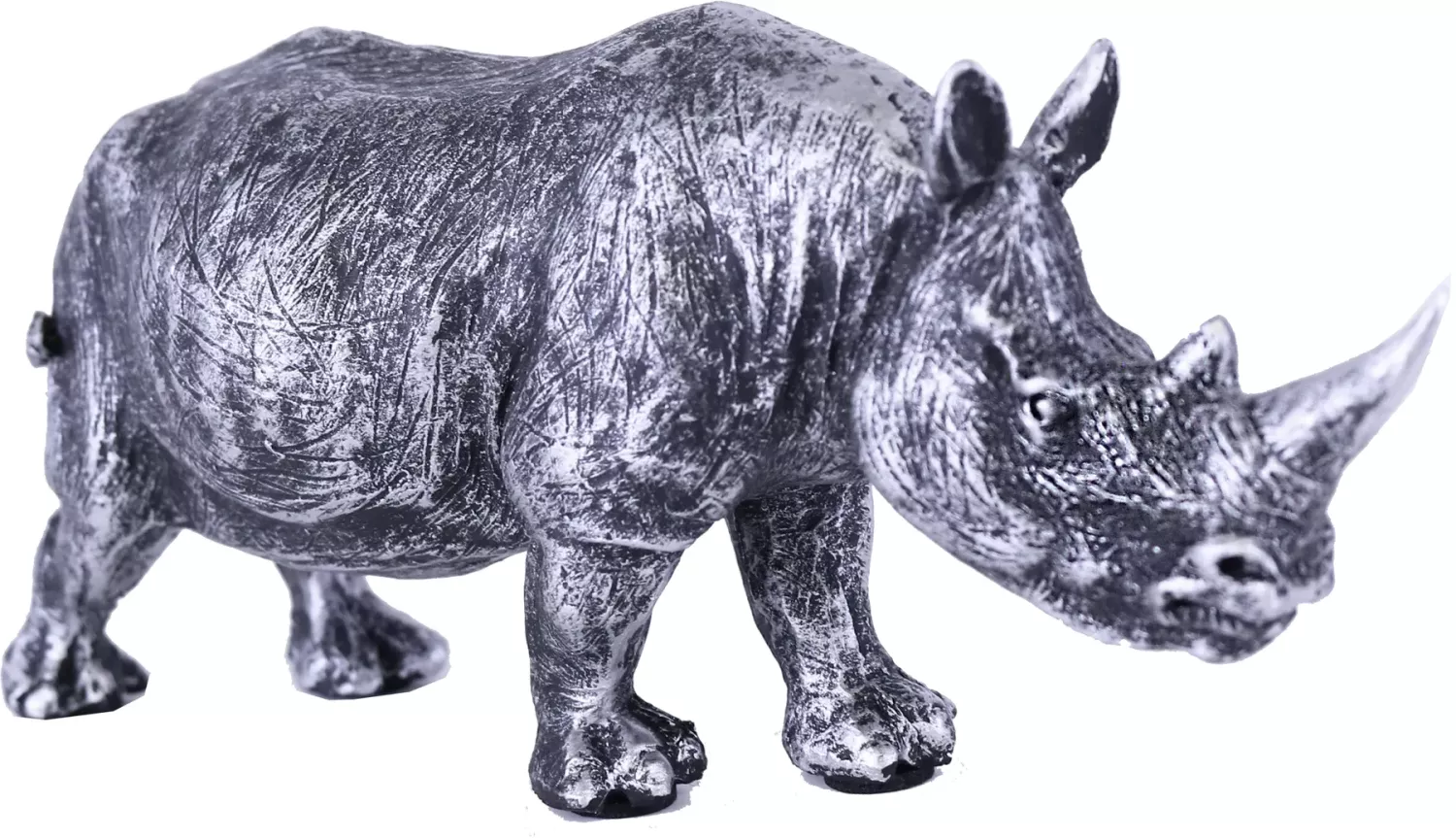 Fin noshörning i antik silver färg. Snygg inredningsdetalj till den som gillar annorlunda design i hemmet. Perfekt figur till den som gillar djur och dekorativa prydnader.