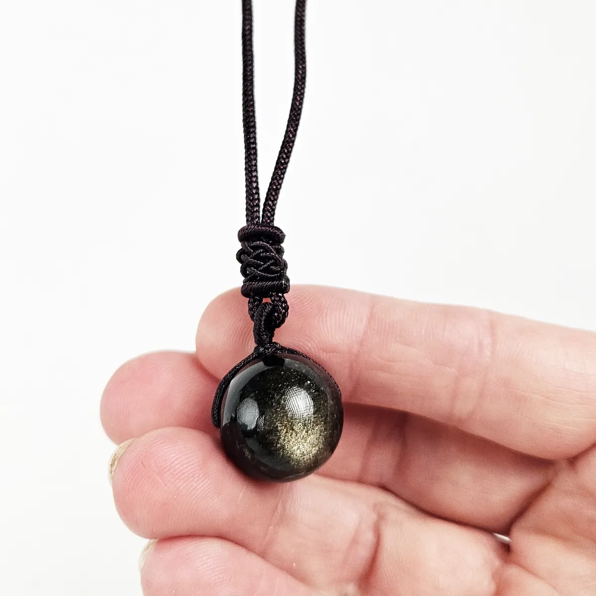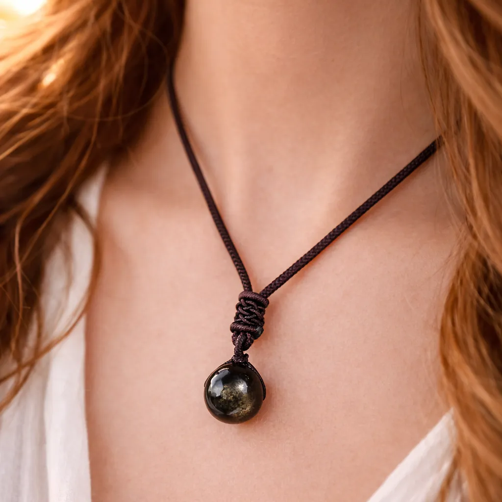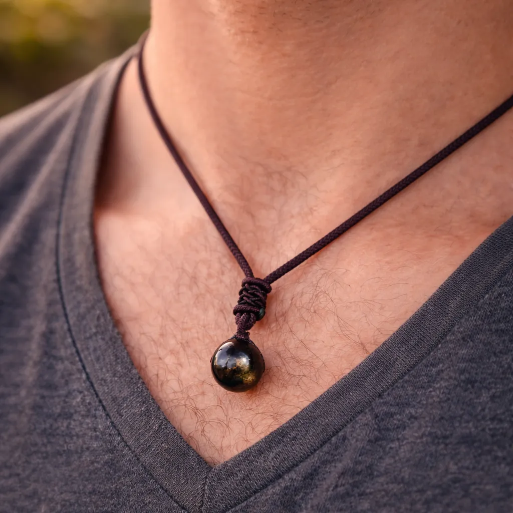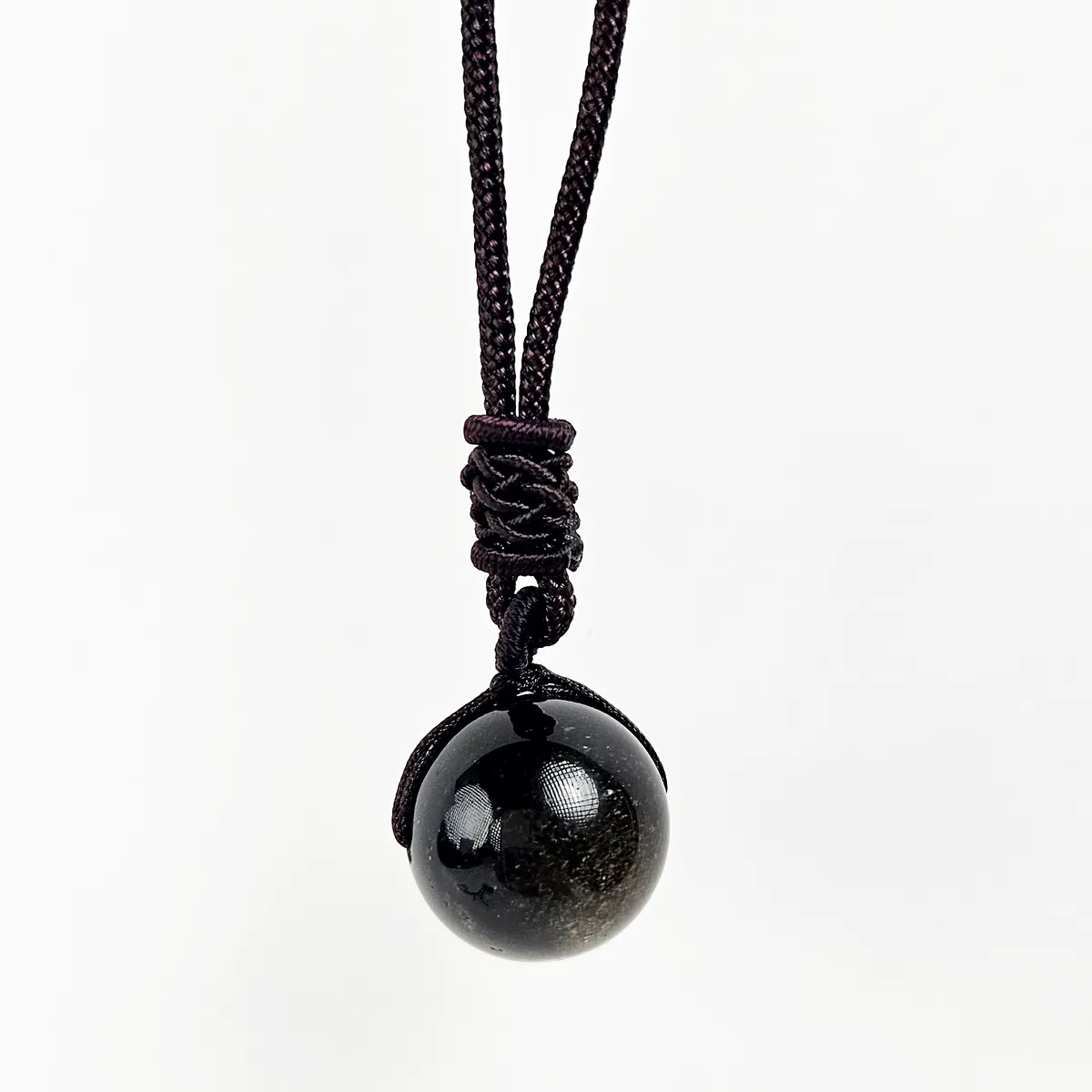 En slipad obsidian kristall på 18 mm i ett justerbart halsband.