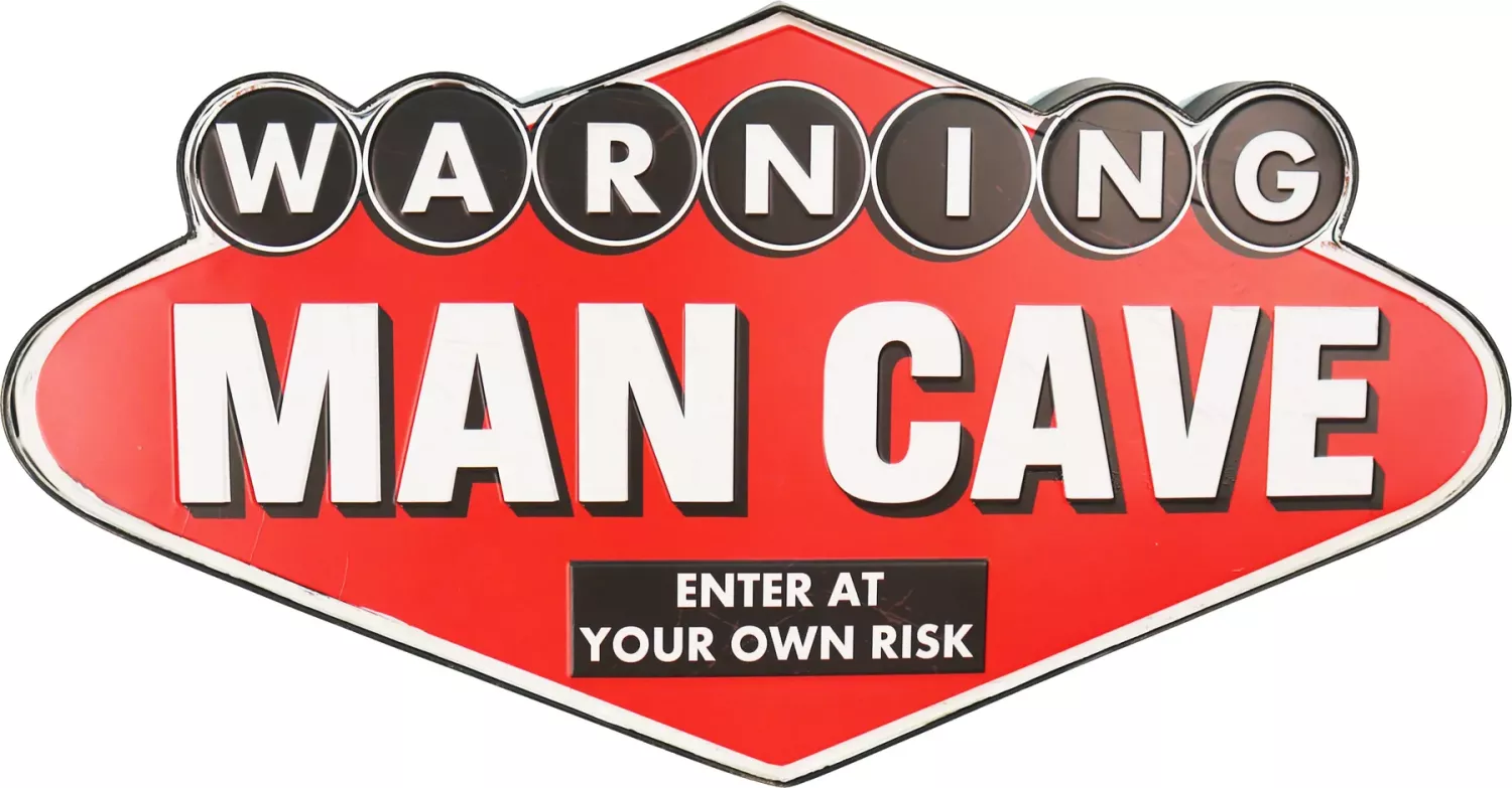 Metalltavla med texten ”Warning Man Cave, enter at your own risk”. Perfekt present till den som vill vara ifred på sitt rum.