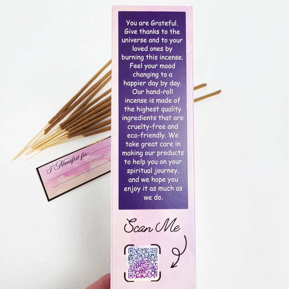Rökelsen passar särskilt bra när du vill skapa en stund av tacksamhet och lugn i vardagen. Den sprider en jämn och behaglig doft som hjälper till att skapa en avslappnad och harmonisk miljö.