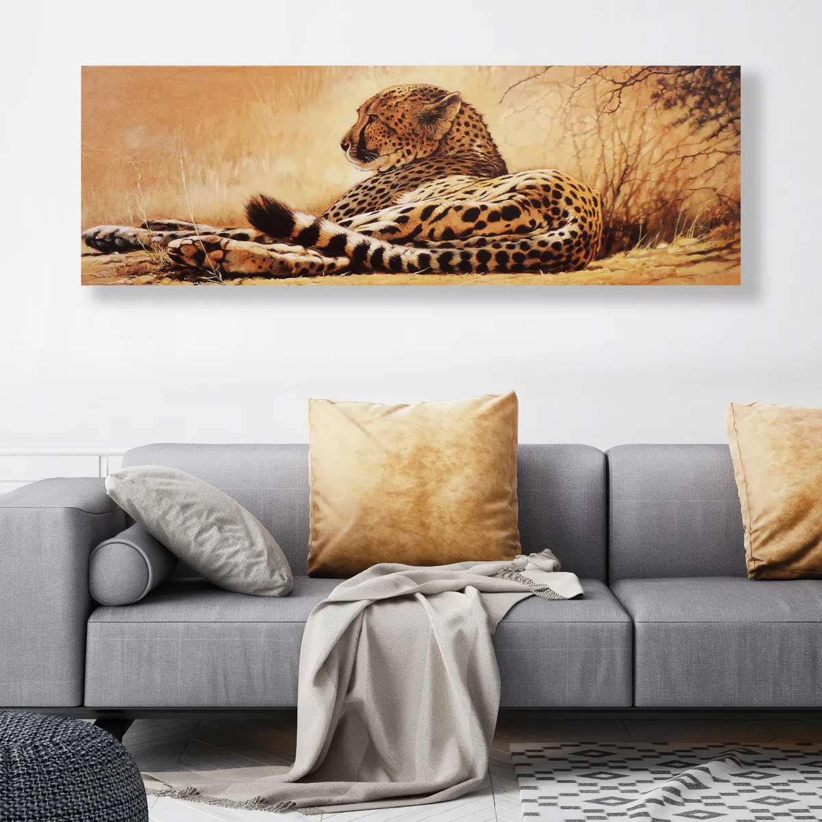 Printad canvastavla på högkvalitativ canvasduk med tryck av en fin leopard som ligger och vilar.