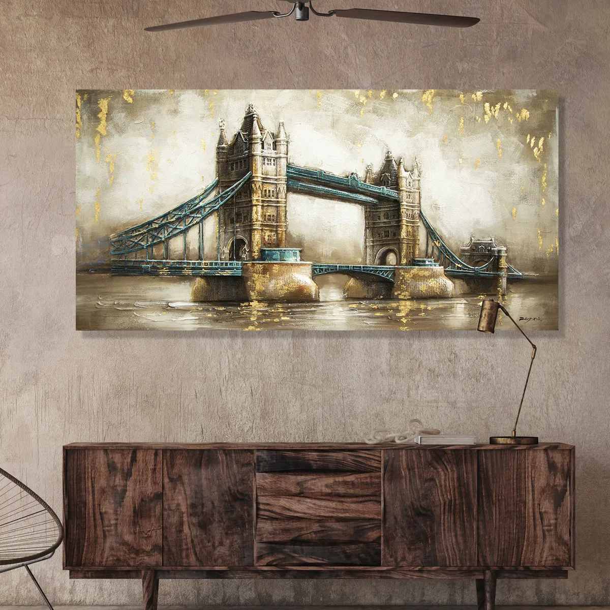 Tavla Oljemålning 3D Old Tower Bridge