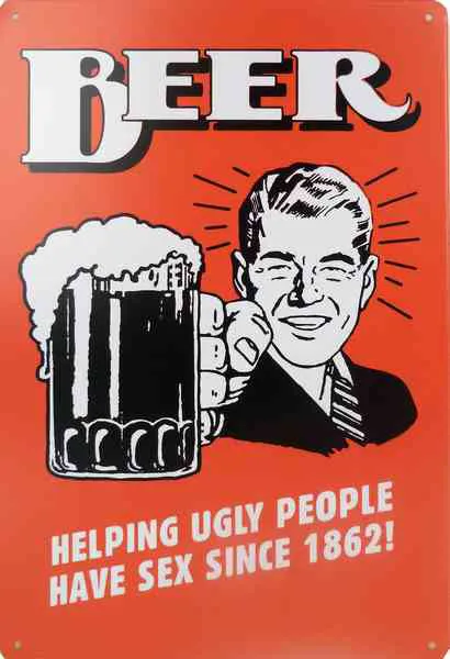 En plåttavla som kombinerar humor och nostalgi i ett, skapad för att ge rummet karaktär och ett avslappnat uttryck. Den här retro tavlan visar att inredning inte alltid behöver tas på allvar, ibland räcker det med ett skämt och en öl för att skapa rätt stämning.