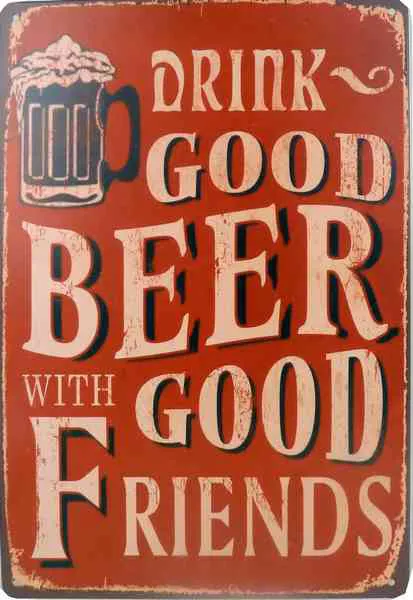 Det finns stunder som aldrig går ur tiden, som när man sitter med goda vänner, skrattar och delar en kall öl. Den känslan fångas perfekt i denna metalltavla, en hyllning till gemenskap, humor och den enkla glädjen i att ta en paus från vardagen. Den slitna ytan, den djupa röda tonen och de stora bokstäverna ger tavlan en autentisk vintagekaraktär som påminner om gamla barer, ölkällare och kvällar fyllda av skratt.