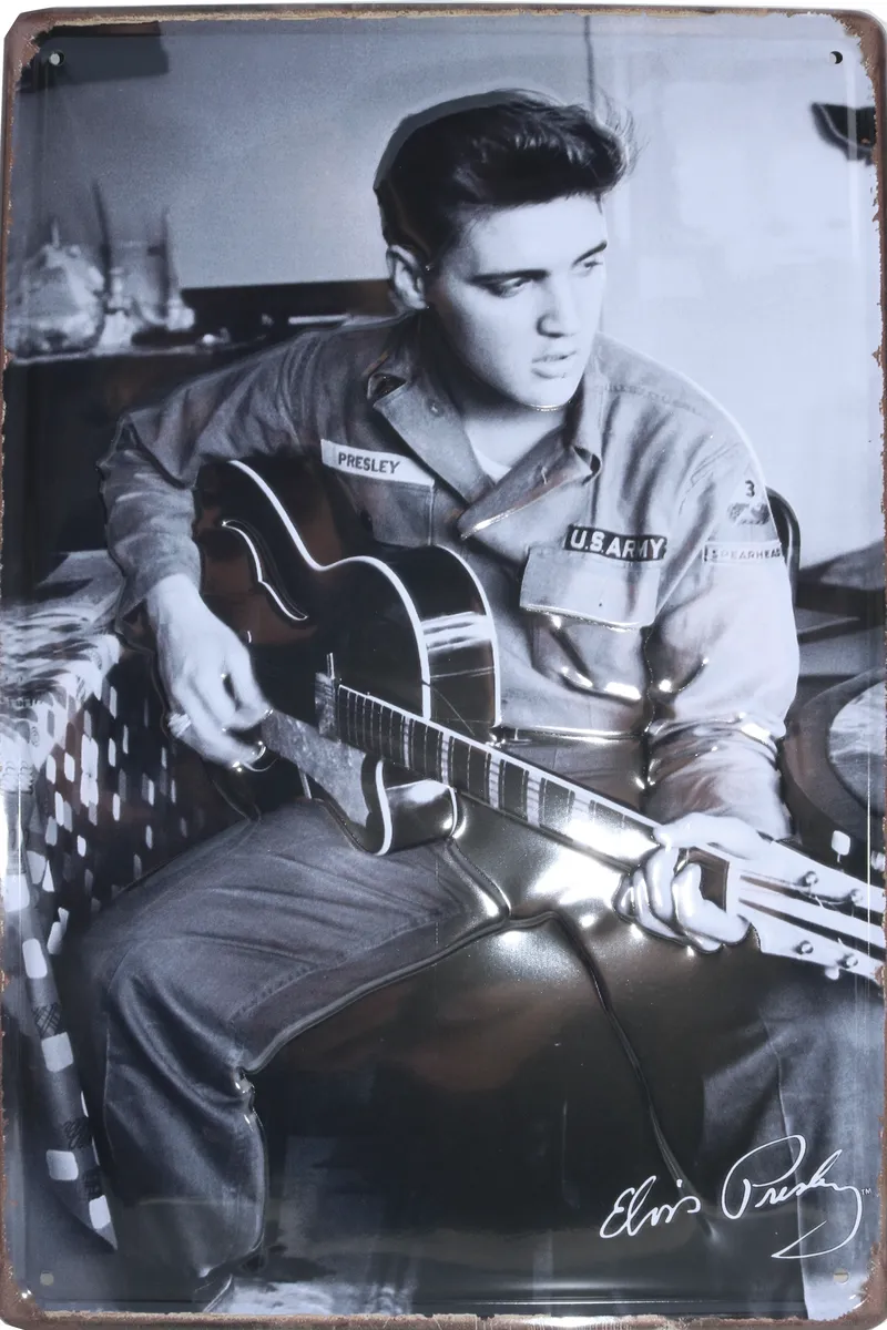 Metall tavla 3D Elvis Presley. Perfekt till den som gillar motorcyklar, oldies, inredning till garaget, baren eller till den som gillar gamla retro reklamskyltar.
