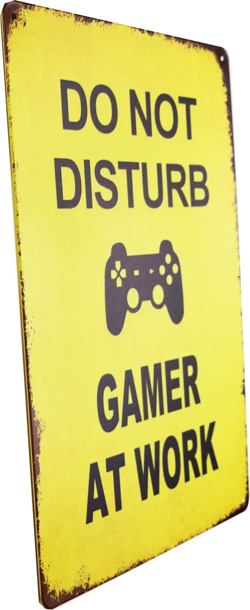 En varningsskylt som säger allt. Do Not Disturb Gamer At Work fångar den där känslan när fokus är total och världen utanför inte existerar. Den klargula bakgrunden med den svarta spelkontrollen i mitten drar direkt till sig blicken och skapar en lekfull kontrast som både roar och varnar. Här råder full koncentration och alla som närmar sig gör det på egen risk.
