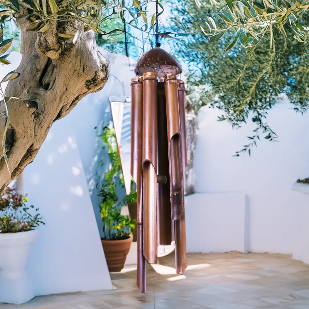 Handgjort bambu vindspel – Naturlig dekoration med rogivande ljudSkapa en harmonisk atmosfär med vårt vackra, handgjorda bambu vindspel med topp av kokosnöt. De sex bamburören ger ett djupt, avslappnande ljud när vinden blåser, perfekt för trädgården, altanen, balkongen eller uteplatsen.